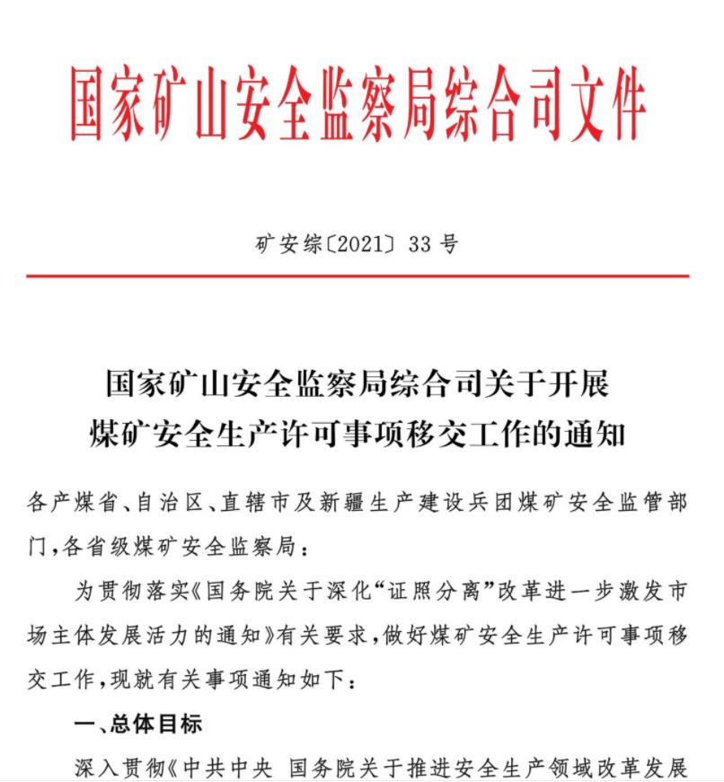 查看詳細(xì)煤礦安全生產(chǎn)許可事項(xiàng)移交省級煤礦安全監(jiān)管部門承擔(dān)國家礦山安監(jiān)局 2021…